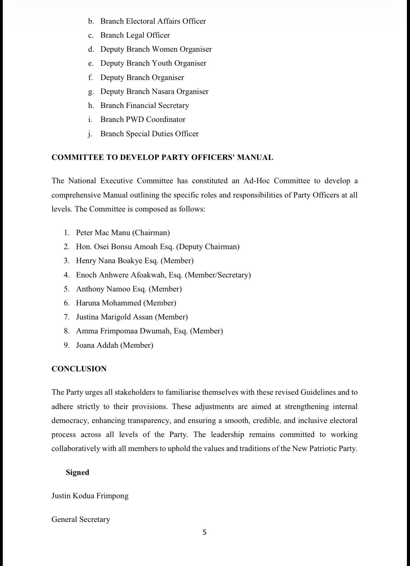 In a statement issued on April 8, 2026, and signed by the party’s General Secretary, Justin Kodua Frimpong, the National Executive Committee (NEC), acting on behalf of the National Council, approved the updated guidelines following a comprehensive review of existing procedures.