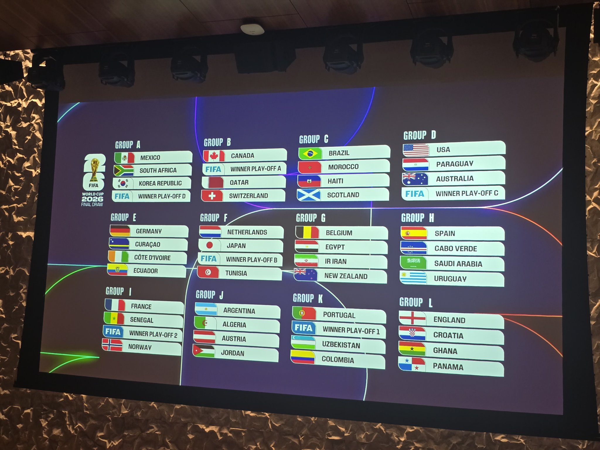 The draw for the World Cup took place at the John F Kennedy Centre in Washington, D.C. on Friday, December 5, 2025.