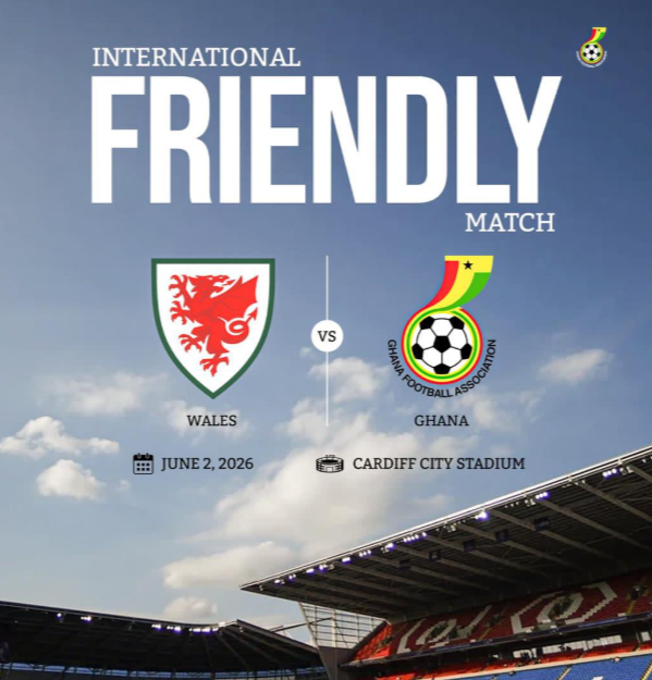 The Ghana Football Association has confirmed that the Black Stars will take on Wales in an international friendly as part of preparations for the 2026 FIFA World Cup.