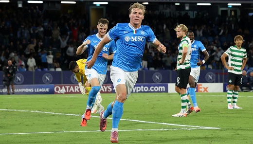 De Bruyne was key to Napoli taking the lead in the 36th minute as he burst from in front of his own area before beautifully sliding through Hojlund who calmly slotted past Sporting goalkeeper Rui Silva.