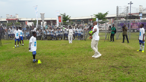 In all, about 100 kids from schools across the country participated in the clinic and were taken through basic skills in football.