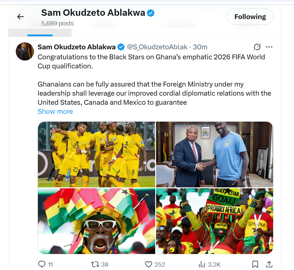 In a post on his X page, Mr Ablakwa said, “Ghanaians can be fully assured that the Foreign Ministry under my leadership shall leverage our improved cordial diplomatic relations with the United States, Canada and Mexico to guarantee appreciable visa quotas for our globally acclaimed football fans. GHANA, here we come!”