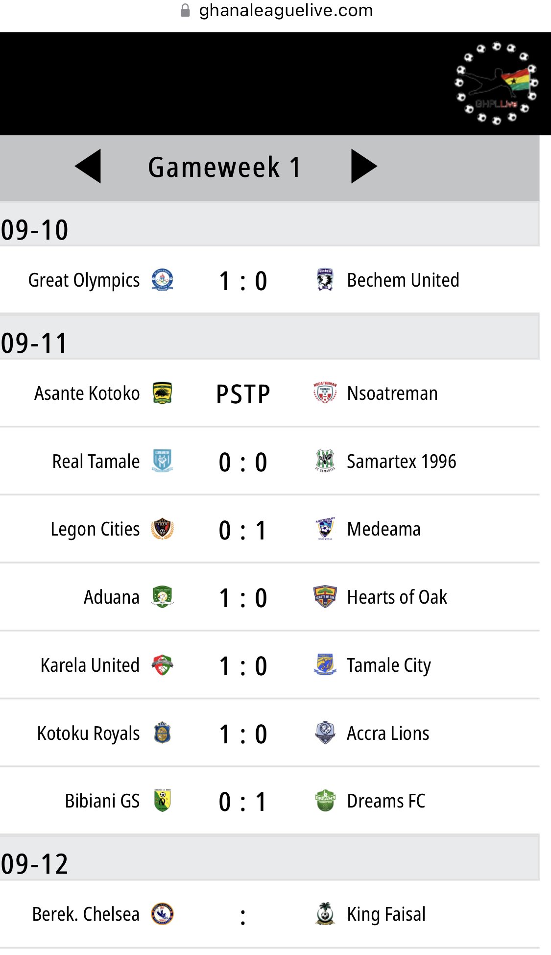 Aduana Stars sit top of the table after matchday 1 of the season with 3 points whereas Hearts of Oak occupies the 14th position.