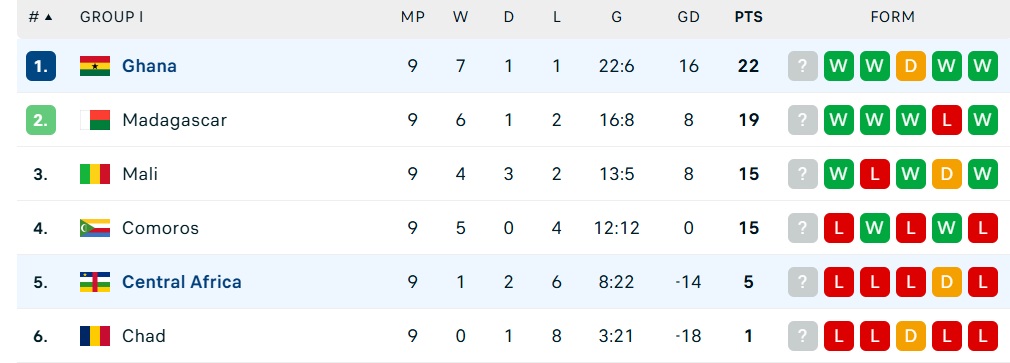 The Black Stars will take on Comoros in their final Group I fixture on Sunday.