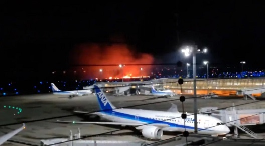 Japan Airlines flight 516 took off from Sapporo’s New Chitose Airport in Hokkaido prefecture to Tokyo’s Haneda Airport with approximately 400 passengers and crew on board, according to NHK.