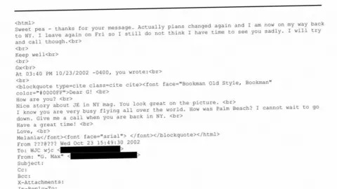 She referred to a 2002 email between her and Maxwell released in the Epstein files, calling it nothing more than "casual correspondence" and a "polite reply".