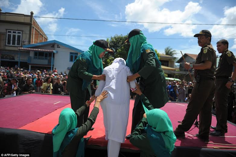 Photos have emerged on social media showing couples being brutally flogged for violating Sharia law in Indonesia's Aceh province.